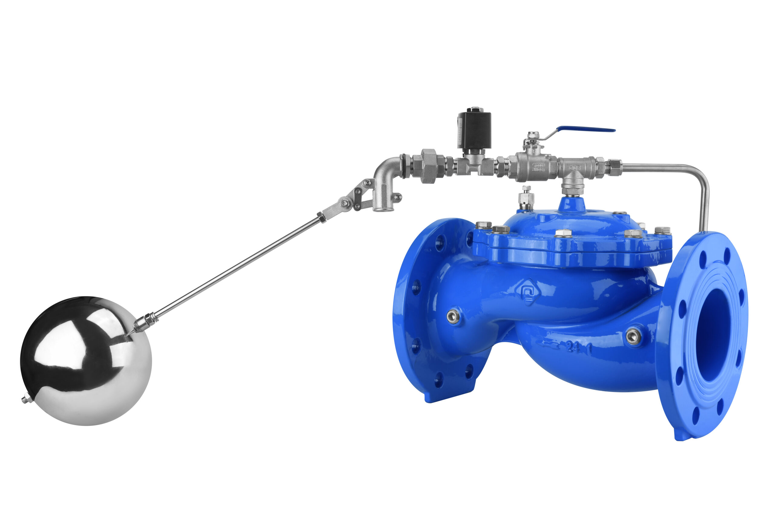 This float control valve is a hydraulically driven automatic control valve used to control the filling and liquid level of a reservoir or water tank. The filling is controlled by an adjustable horizontal float. The water filling of the reservoir is controlled by the horizontal float to open the valve at a preset low water level of the reservoir and close the valve at a preset high water level.When the float pilot valve fails, the solenoid valve works to close the main valve body, which plays a double insurance role.It is mainly used for urban water supply, building water supply, agricultural irrigation, industrial water and other occasions.